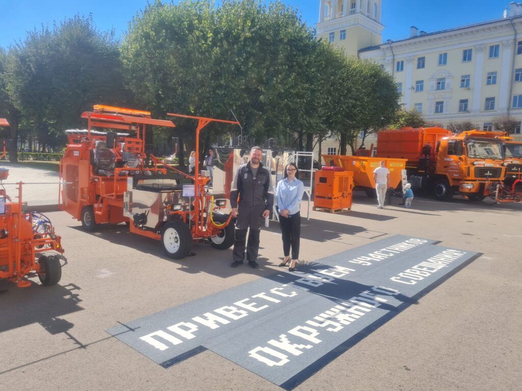 На площади Ленина перед зданием Администрации города Смоленска была представлена универсальная самоходная разметочная машина Виннер СМ 522Т, оснащенная котлами для плавления и разогрева термопластика. В рамках демонстрации работы вышеуказанного оборудования была нанесена приветственная надпись для участников мероприятия.