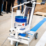 Предназначена для нанесения горизонтальной дорожной разметки холодным пластиком, на очищенные и сухие покрытия дорог, в виде гладкой линии, с возможностью посыпки стеклошариками для улучшения световозвращения. Машина комплектуется быстросменными блоками разметки (каретками), позволяющими производить разметку шириной 100, 150, 200, 400 мм (размер каретки, поставляемой в базовой комплектации 400 мм, дополнительных кареток согласовывается при заказе). Ширина нанесения стеклошариков, настраивается под конкретную ширину разметки. Перемещение машины при работе производится при помощи оператора.